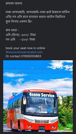 Routes : Dhaka->Khagrachari,Khagrachari->Dhaka,Shibbari->Raypur,Savar->Khagrachari,Baipail->Lakshmipur,Savar->Lakshmipur,Abdullahpur->Khagrachari,Cox's Bazar->Raypur